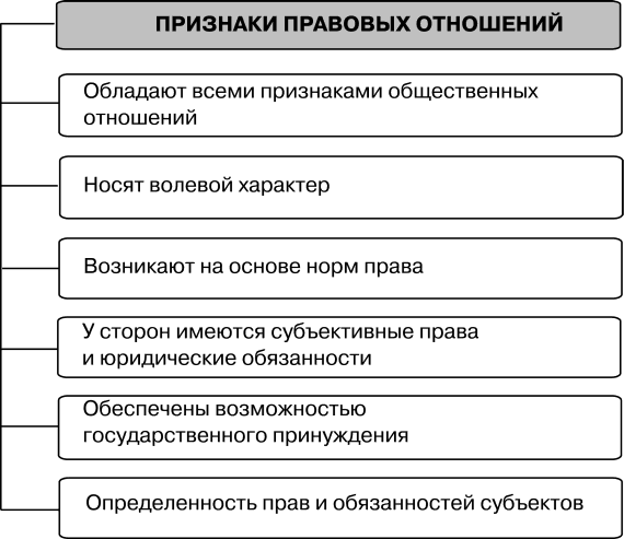 Право регулирует эти отношения следующим образом: на одного право налагает обязанности, а другому дает права. Обязанности мы в данном случае называем юридическими, потому что они установлены правом и носят общеобязательный характер в отличие, например, от моральных или религиозных обязанностей а права мы называем субъективными, потому что они принадлежат определенному субъекту. Субъективные права и юридические обязанности составляют содержание правоотношений. Субъектами правоотношений могут быть люди или организации, причем к организациям относятся: государства например, Россия или Германия; государственные органы скажем парламент или правительства региона и государства например вологодской области или Республика Дагестан; города, деревни, а также коммерческие и некоммерческие организации, например, "Сбербанк", русская православная церковь или партия Единая Россия. Не могут быть субъектами правоотношений вещи или животные - у них не может появиться никаких прав и обязанностей в юридическом смысле. Объект правоотношений - это материальные или нематериальные ценности на которые направлено деятельность субъектов правоотношений, например, имущества или деньги. Еще одно важное понятие - это юридический факт. Так называют события или действия в результате которых возникают изменяются или прекращаются правоотношения. События это то что происходит помимо воли субъектов правоотношений, например, стихийное бедствие или смерть, а действие - это то что происходит по воле субъектов правоотношений, например, заключения договора или совершение преступления. Учтите, что правоотношения не обязательно должны быть оформлены в письменном виде у многих есть иллюзия что если они не подписали бумажку под названием договор то у них и не возникнет никаких прав и обязанностей но это не так скажем если вы продаете какую-то вещь или занимаете кому-то деньги у вас все равно возникают правоотношения и взаимные права и обязанности. Конечно, если у вас нет договора в письменном виде доказать что-то в суде будет сложнее но у вас все равно остаются свидетельские показания, видеозаписи, платежные документы, переписка и другие возможные доказательство это уже другой вопрос что и как можно доказать в суде точно так же и преступления из которого возникает правоотношение не всегда в реальности приводит наказанию преступника, ведь нужно еще найти и доказать вину конкретного человека. В общем одно дело, какие правоотношения возникли, другое дело сможете ли вы реально заставить другого субъекта исполнить его обязанности.Итак, для возникновения правоотношения у нас должны быть юридическая обязанность и субъективное право другого субъекта, причем этих прав и обязанностей может быть несколько. Признаки правоотношения: